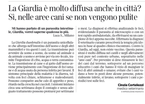 La Giardia è molto diffusa anche in città? Sì, nelle aree cani se non vengono pulite.